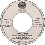| ****** Paranoid war meine erste selbstgekaufte Single. Sie kostete seinerzeit 4,95 DM. Da ich monatlich nur 5,00 DM Taschengeld bekam, musste ich mir immer sehr genau überlegen was ich damit anstellte, bzw. was ich mir davon kaufte. Ich hatte den Song auf unseren Klassenparty`s kennengelernt wo er 1970 rauf und runter lief. Damals war von Begriffen wie Headbanging oder Heavy Metal noch keine Rede. Black Sabbath war damals eine von diesen neuen Hardrockbands wie Led Zeppelin, Deep Purple usw. Ich fand und finde die Nummer einfach stark, weil sie gut abgeht und schön rockt. |